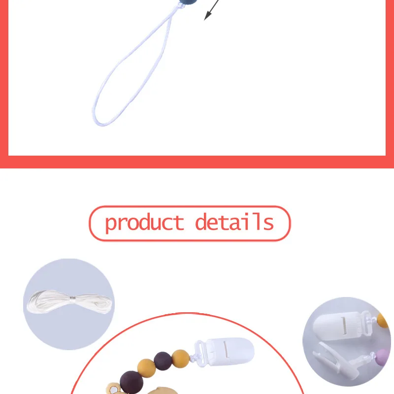 1. Цепочка для сосков застегивается в угол детской одежды, чтобы соска не упала на землю и не испачкалась.