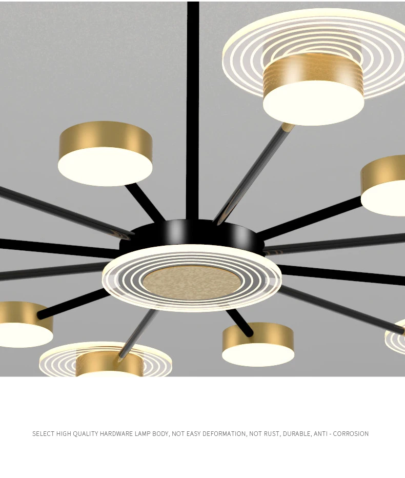 Цвет: черный + золотой стиль: потолочный светильник/люстра Цвет излучаемого света: холодный светильник/Теплый светильник/Яркость затемнения Материал: Кованое железо + акрил Размер: как на изображении bleow! Примечание: Этот продукт не включает лампу, вам нужно купить его самостоятельно! Источник: светодиодный светильник E27. Напряжение: 85 В ~ 260 В (Пожалуйста, обратите внимание на напряжение при заказе или свяжитесь с нами!) применение: спальня, гостиная, столовая, кухня, ресторан, кафе, вилла, отель, салон, кабинет, офис, рабочее место, студия, книжный магазин, клуб и т. Д. При возникновении любых проблем, пожалуйста, свяжитесь со службой поддержки клиентов, мы ответим вам в первый раз. Примечания: 1. Измерения выполнены вручную, допускается погрешность в 1-3 мм, спасибо за понимание. 2. Из-за разницы между различными мониторами изображение может не отражать фактический цвет изделия. Мы гарантируем, что тип одинаковый. 3. Пожалуйста, перед покупкой подтвердите размер и напряжение лампы.