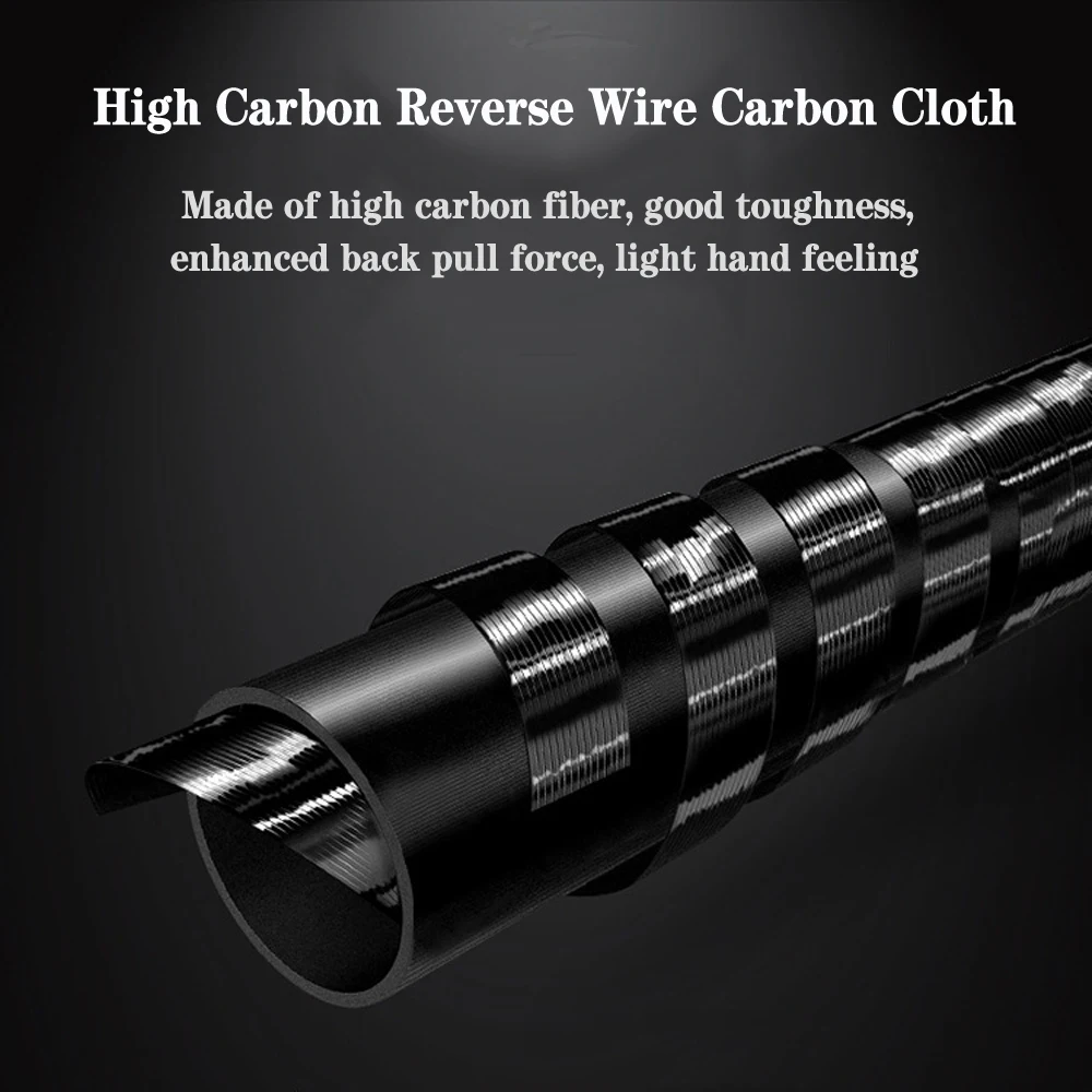 1. Высокоуглеродное волокно, специальная структура из углеродистой ткани, легкий дизайн, весь полюс является гибким и жестким, легче по весу и лучше сбалансированным.