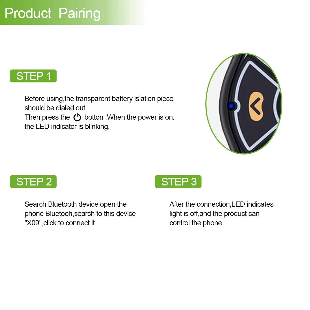 Работает от 1 батарейки-кнопки CR2032 (встроенной), посылка входитЗапасная батарейка-кнопка.