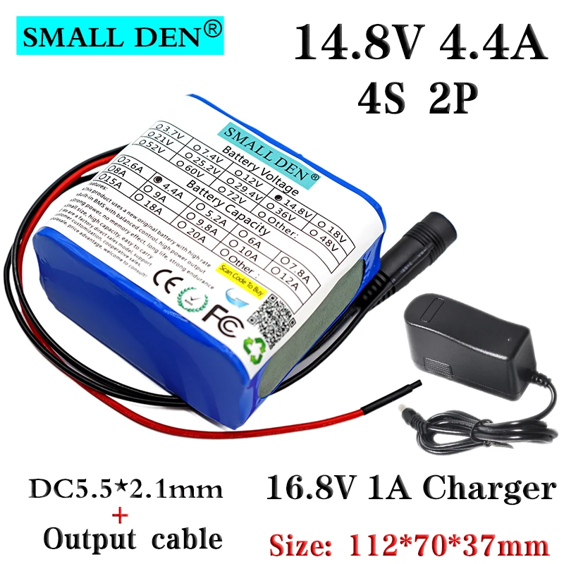 14,8 V 4.4A 18650 литиевая батарея пакет + 16.8V1A зарядное устройство встроенный 10A BMS, ночная рыбалка огни, колонки, 14V аккумулятор + зарядное устройство