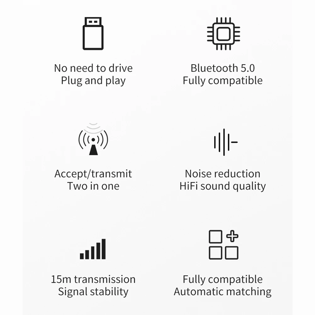 Feature: Built-in noise reduction HIFI sound quality. Fully compatible with automatic matching. One-key mode switching, blue light receiving, red light transmitting. No need to drive, plug and play. No built-in battery, external power supply. Specification: Bluetooth-compatible Version: 5.0 Colour: Black Function: 2 in 1 Bluetooth-compatible Audio Receiving Transmitting Input Interface: 3.5mm Input Voltage: DC/5V Transmission Signal Distance: 10-15m/32.81-49.21ft Product Size: 43 X 21 X 11mm/1.69 X 0.83 X 0.43" Package Weight: 27g Suitable for Computer, TV, Projector (Transmitting Mode)/Speaker, Earphone (Receiving Mode) Note: 1. Due to the different monitor and light effect, the actual color of the item might be slightly different from the color showed on the pictures. Thank you! 2. Please allow 1-3mm measuring deviation due to manual measurement. ![]() 1 X 2 in 1 Bluetooth-compatible Receiver Transmitter 1 X Audio Cable 1 X Manual