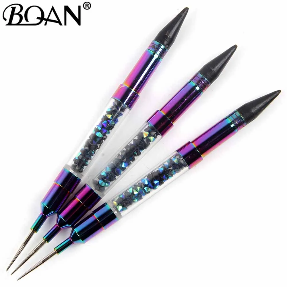BQAN 1 шт., двусторонняя точечная ручка для ногтей, кристалл ручка для бисера, гвоздики со стразами, воск, карандаш для маникюра, инструмент для дизайна ногтей