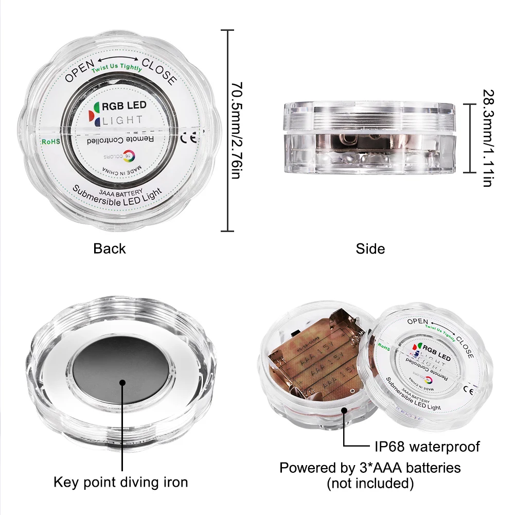 Отзывы о 4 шт. RGB погружной светильник с 10 светодиодами работающий от батарейки подводный