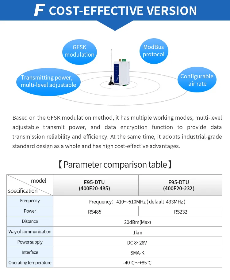 Отзывы о E95-DTU(400F20-232) SX126X 410-510MHz 20dBm 1km Range 12V 24V RS232 Modbus Din Rail 433Mhz LoRa Modem | Мобильные телефоны и