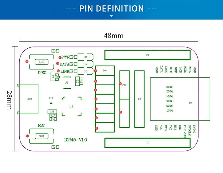 E104-BT5011A TB тестовый комплект для nRF52811 2400-2483,5 MHz 4dBm 70m Диапазон 3,3 V BLE5.0 керамическая антенна UART BLE модуль