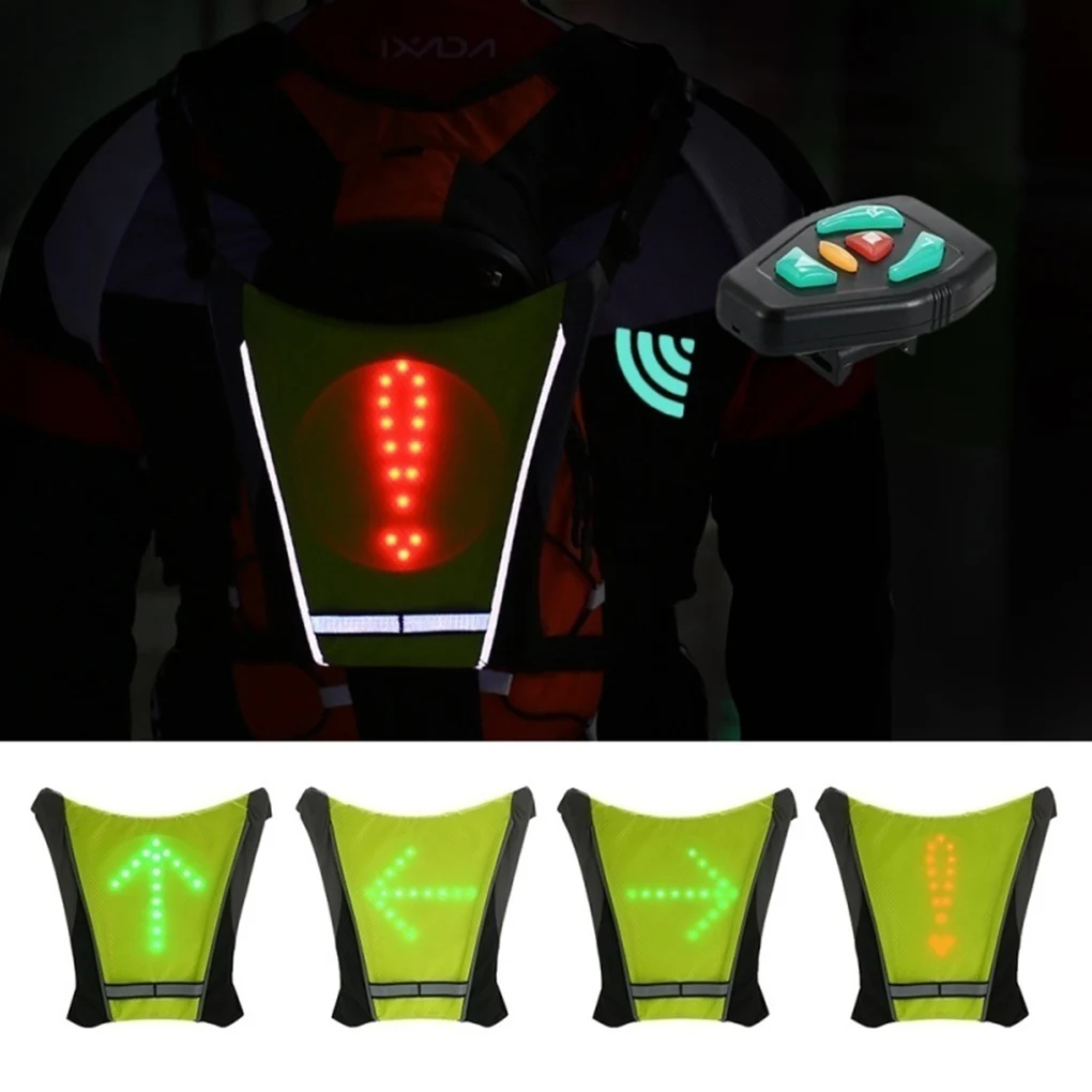 Велосипедный жилет с беспроводным управлением разработан с помощью светодиодный индикатора на задней панели, который может отображать левый поворот, правый поворот, вперед, стоп-знак.