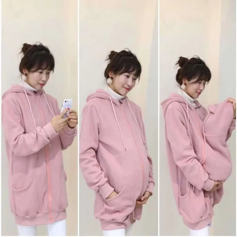 Новые зимние Утепленные толстовки с капюшоном для малышей пальто для мам и пап-кенгуру свободная Модная хлопковая куртка с капюшоном для беременных