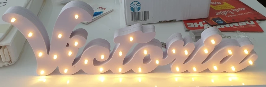 product name Wooden letters, letters, LED lights, signs, caption lights, night lights, LED growing lights, wall decoration, bedroom wedding decoration lights Size is about 15.2 cm high and about 40-50 cm wide MDF + LED lamp beads (large quantities) fashion Color: as shown Note: When using button batteries, our products do not have button batteries. After receiving the product, the buyer needs to buy the battery by himself. Special statement: If you need a name, please remember that the name cannot exceed 6 letters