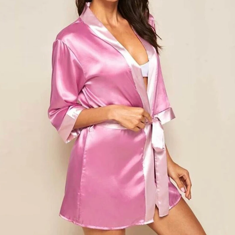 Отзывы о Пижама женская атласная пикантный домашний кардиган кружевная ночная рубашка