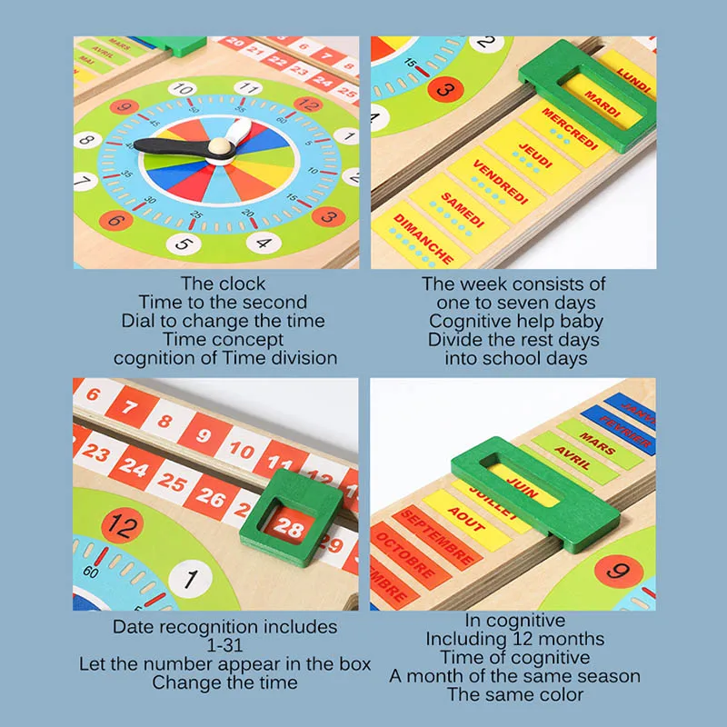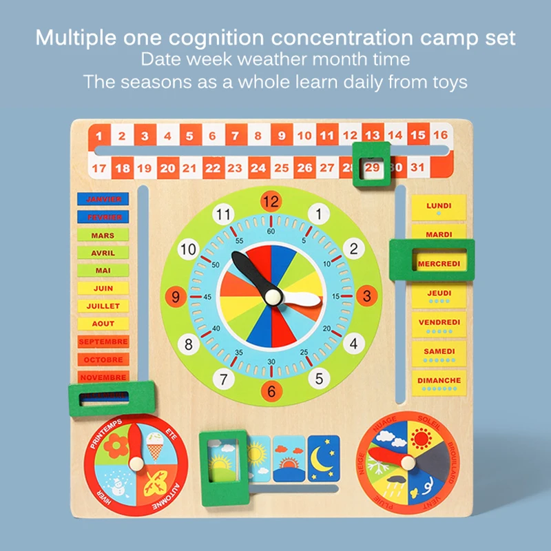 Многофункциональный деревянный календарь позволяет детям научиться знаниям о времени недели, дате, моли, погоде и сезон, тренировать их практические навыки, это хороший выбор в качестве инструмента для раннего обучения.
