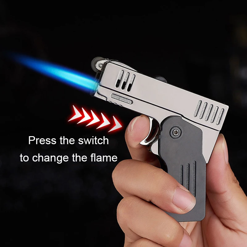 Забавная креативная личность Бутановая надувная газовая зажигалка двойной струйный фонарь Изменяемая форма пламени воспламенитель подарок для мужчин и женщин