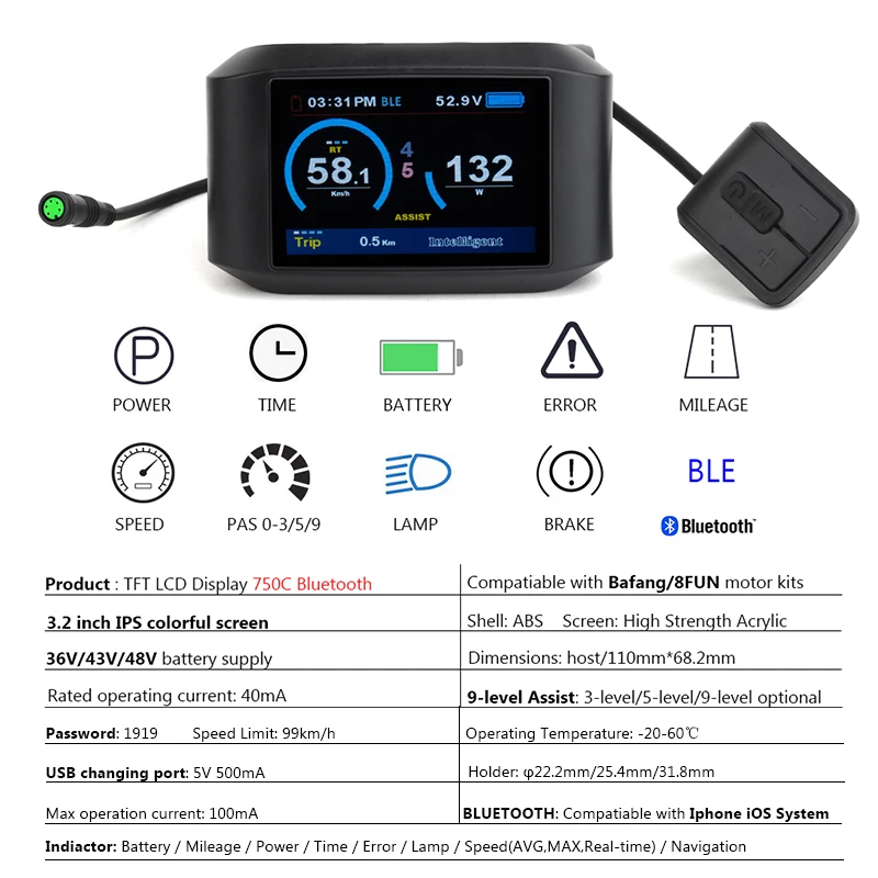 Отзывы о ЖК-дисплей для электровелосипеда с Bluetooth 750C Bafang Mid Motor BBS01 BBS02 BBSHD E-Bike 36 в 48 52 60 -