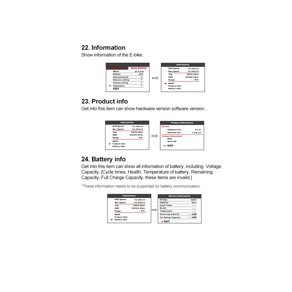 4, общий километр/миля расстояние, время, скорость и индикатор уровня PAS