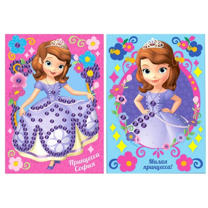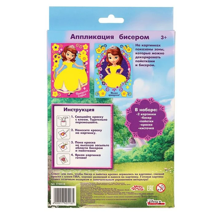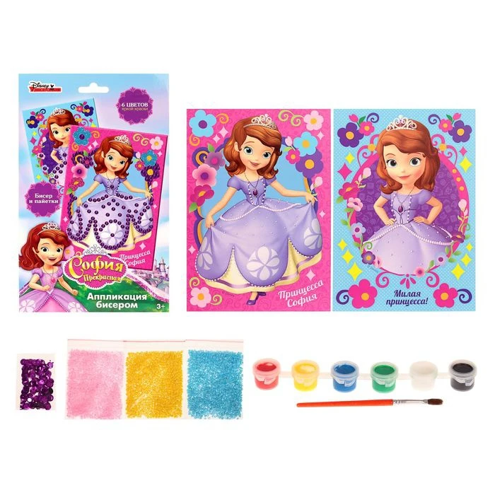 Аппликация бисером "Милая принцесса!", София Прекрасная, краски 6 цветов, кисть, пайетки, А5