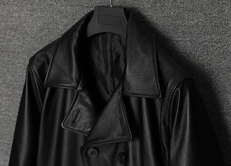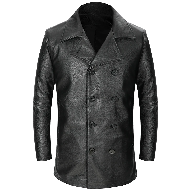 Классическая Военная военно-морская 740 двубортная куртка из бычьей кожи мужская обувь из натуральной кожи мужские зимние куртки Длинная кожаная верхняя одежда
