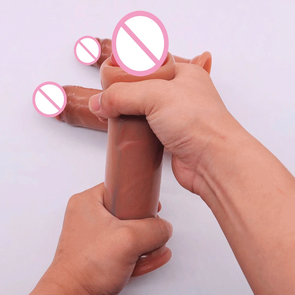 Жидкий силикон, большой реалистичный пенис, двойной фаллоимитатор, присоска, раздвижная крайней плоти, большой член, Женский страпон, сексуальная игрушка для мастурбации