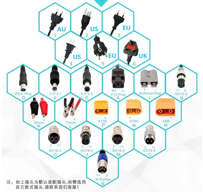 Примечание:Если вам нужен другой разъём разрядки, пожалуйста, выберите его на рисунке ниже и оставьте сообщение для разъема, который вам нужен. Если вы не оставите нам сообщение, мы вышлем вам Разъем xt60 в качестве разъема разряда.