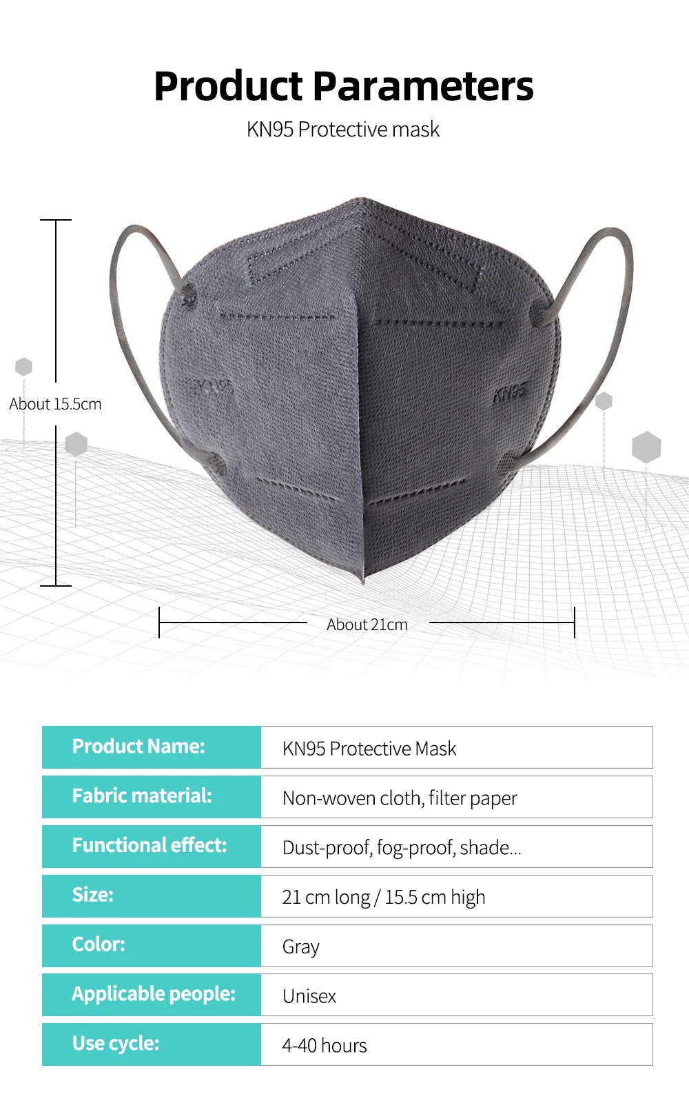 О масках: Маска может изолировать мелкие частицы и плотно прилегает к лицу, ее нелегко пропускать воздух с периферии, а эффективность фильтрации твердых частиц может достигать 95% при стандартных условиях. Маска не является одноразовой. Этот специальный чехол (недостаток ресурсов) можно использовать повторно. Но есть условия: 1. При получении загрязнений, таких как слюна, кровь, слезы и другие жидкости в организме, их необходимо заменить 2. Пользователь, очевидно, чувствует, что сопротивление дыханию больше, чем раньше и должно быть заменено 3. Маски повреждены и должны быть заменены Материал: Нетканая ткань, Электростатическая расплавленная ткань, хлопок горячего воздуха Пожалуйста, обратите внимание, что указанный Товар производится и распространяется за рубежом и в соответствии с законодательством страны его происхождения
