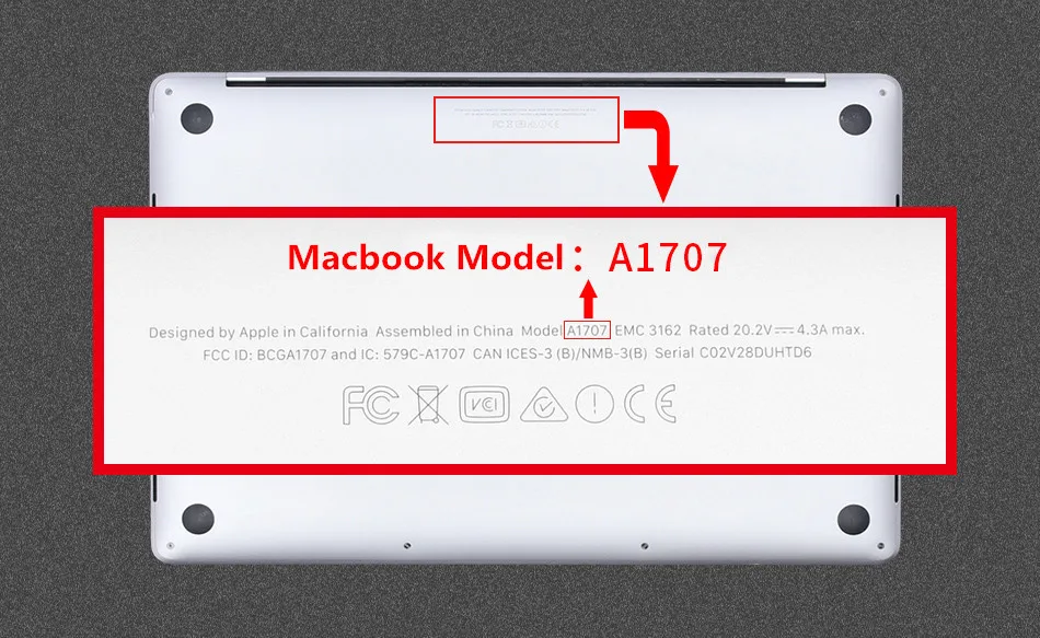 Внимание, пожалуйста:Пожалуйста, проверьте заднюю часть вашего Macbook перед покупкой, вы можете увидеть слова"Модель Axxxx", "Axxxx"Это ваша модель MAC, если вы не уверены в модели, пожалуйста, свяжитесь с нами, мы поможем вам.