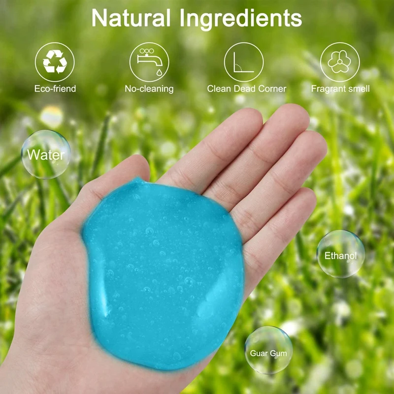 [Безопасный и экологически чистый] экологически чистый и безопасный. Автомобильный чистящий гель сделаны из биоразлагаемых гель лак для ногтей, не липкий руки, светильник аромат очень свежо и не резкий, совершенно не стягивает кожу. (Примечание: чистящий гель не съедобные, пожалуйста, держите их от вашего малыша)