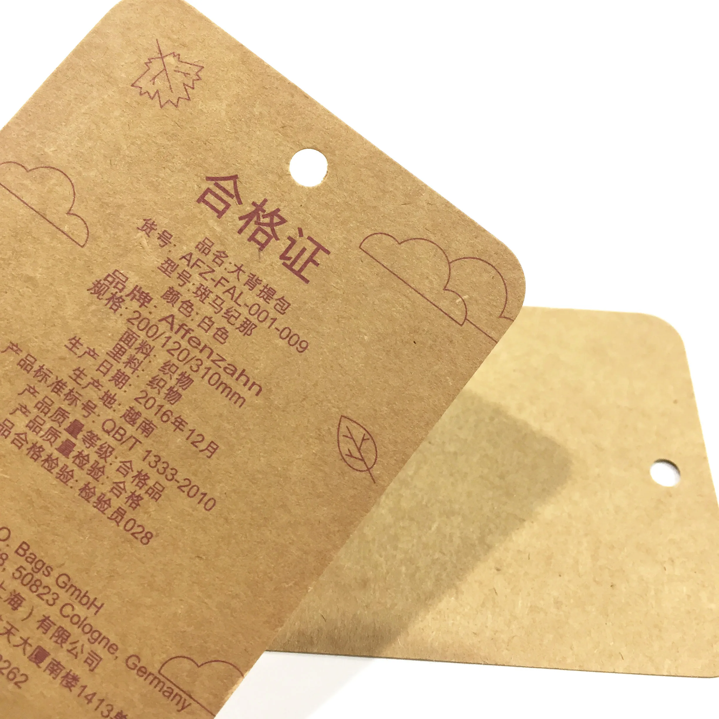 1.[Тип продукта]: подвесная бирка, бирка, бирка для одежды, бирка для качели, бирка-качели, бумажные бирки для одежды, печатные бирки, бумажные бирки для одежды, пользовательские печатные бумажные бирки для одежды. 2.[Материал]: карточка, белая карточка, черная карточка, карточка для рукоделия, ПВХ, кожа, пластик и т. д. 3.[Аксессуары]: веревка/проушина 4.[особенность]: экологически чистый, не выцветающий, переработанный 5.[Цвет]:CMYK или конкретный PANTONE (любой цвет) 6.[Размер]: индивидуальный 7.[Форма]: форма высечки 8.[OEM-сервис]: принято 9.[MOQ]:100 шт. 10.[изготовление образца]:3-4 дня 11.[массовое производство]:4-7 дней (в зависимости от метода и количества ярлыков) 12: доставка курьером/по морю/по воздуху Утилизация поверхности: Обычно есть 5 вариантов для удаления поверхности. 1. Глянцевое/матовое ламинирование 2. УФ-лакировка/точечный УФ-лакировка 3. Горячее тиснение 4. Тиснение/дебосс 5. Глянцевый/матовый лак