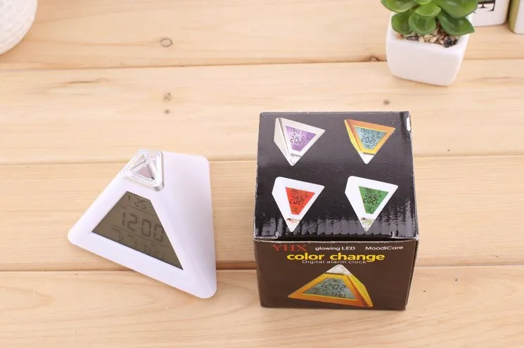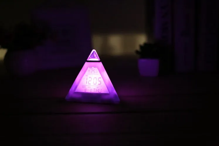 Отзывы о Треугольные часы-пирамида бесшумный будильник вечный календарь термометр часы