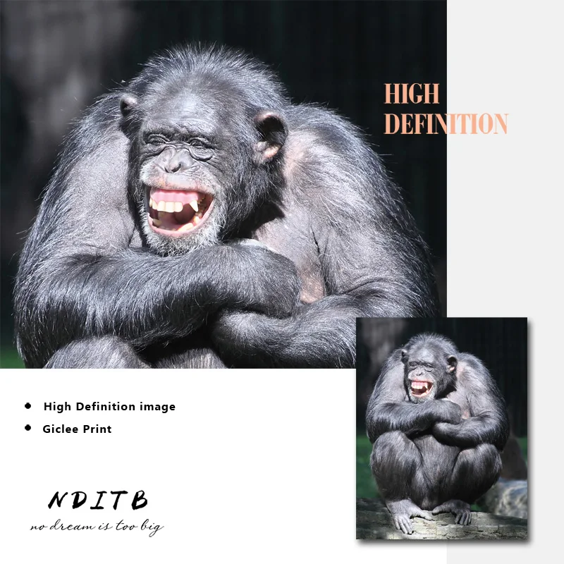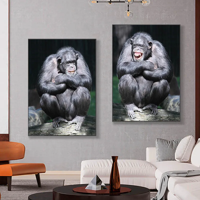 Отзывы о Живопись на холсте "Шимпанзе обезьяна Африки" с улыбкой на лице - смешной плакат для стены в современном стиле декора домашнего помещения.