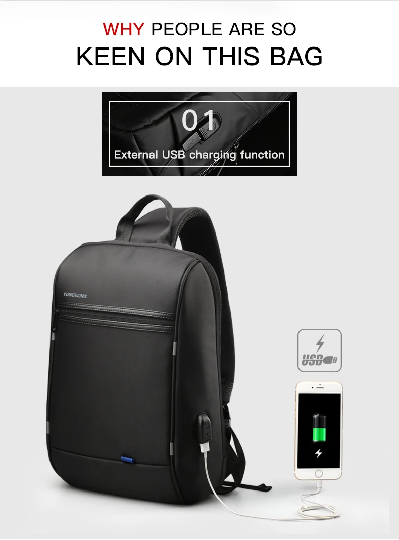 Отзывы о Рюкзак Kingsons на одно плечо для ноутбука мужчин и женщин водонепроницаемый