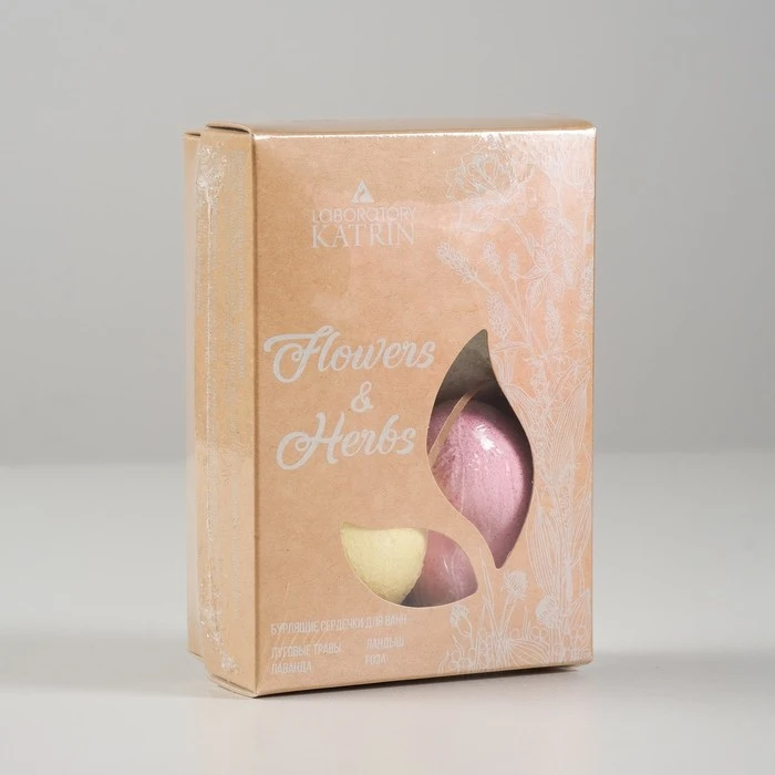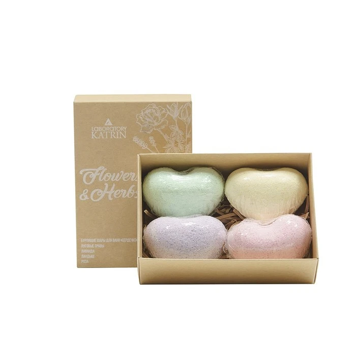 Набор бурлящих шаров для ванн Flowers&Herbs "Сердечки", 4*60 г