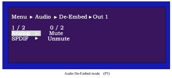 В режиме аудио De-Embed имеет Аналоговый и SPDIF в каждом выходном порту и может переключаться