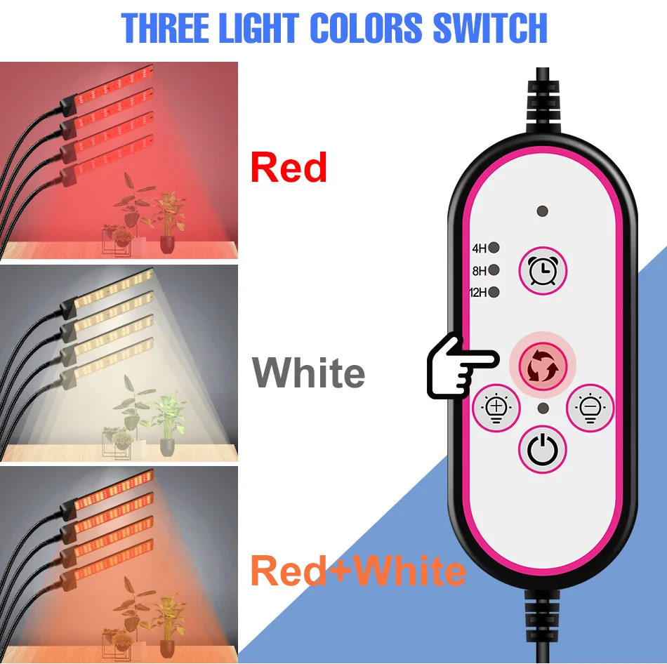 【Трехцветный переключатель 】 есть три светильник мА освещения, красный светильник режим белого света, красный + белый светильник щения. Подходящий режим освещения можно выбрать в соответствии с потребностями растений в росте