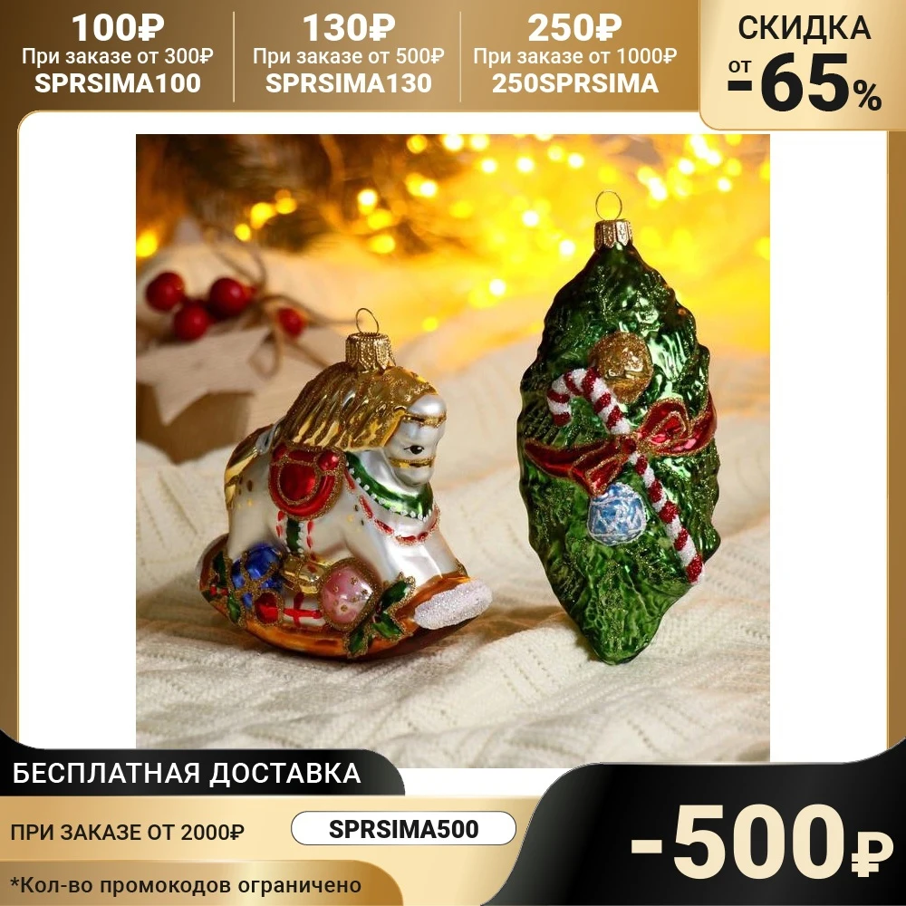 Набор новогодних игрушек "Лошадка и ветка" 4690252