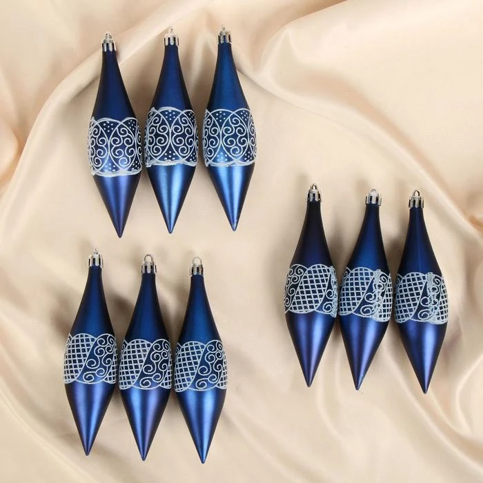 Украшение ёлочное "Сосулька кружевная" (набор 9 шт) 4х13 см синий 4942037