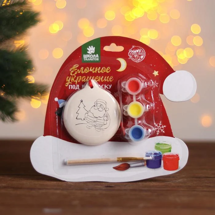 Ёлочное украшение под раскраску «Дед Мороз с мешком подарков» , краска 3 цв по 2 мл, кисть