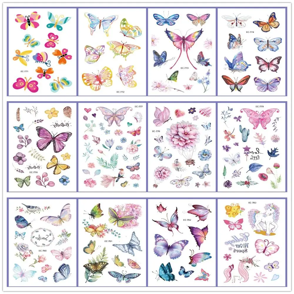 Отзывы о Акварельные Цветы 2 шт./компл. наклейка-Татуировка бабочка цветочные единороги