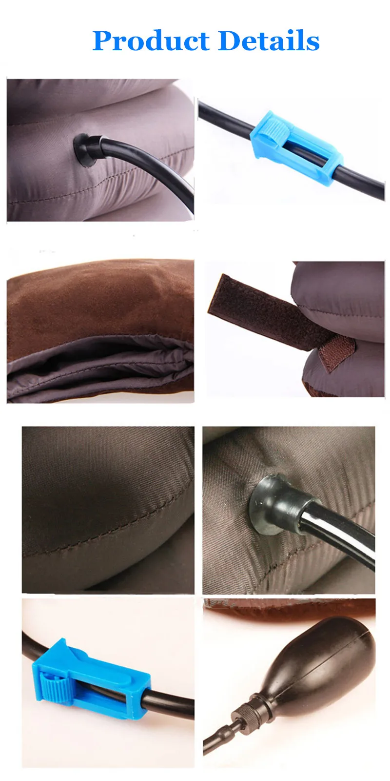 Воздушный надувной шейный Тяговый носилки коррекция шейки воротник облегчение боли релаксационная Подушка Синий Коричневый тракторОписание товара:Название: надувная подушка для шеиЦвет: коричневый, синийСлой: 3 слояТип: 1 трубка/3 трубкаРазмер без учета инфляции: approx.27 x 28 см-10,5 х 10,9 "(Д х В)Надувная длина трубки: 34 см/13,3"Материал: ПВХ и фланелетРазмер: один размер, регулируемыйПосылка включает:1 * тяга шейки маткиПрименение: люди, которые проводят долгое время на компьютерах, автомобилях.Подходит для: уменьшения боли в шее, плечах и спине во время работы, учебы, вождения и т. д.Как использовать:Установите натяжение шеи вокруг шеи, клапан влево, отрегулируйте надувные слои для правильной формы/положения и закройте ремнем. Первый раз пользователи должны положить его перед зеркалом.Убедитесь в правильности положения резиновой подушки. Застегните надувающийся/дефляционный клапан перед ручным насосом.Ручной насос до тех пор, пока вы не достигнете правильного угла тяги и правильного количества растяжения/рельефа, как продиктовано комфортом или как указано вашим врачом. При необходимости Отрегулируйте правую и левую стороны отдельно. Регулировка завершена, когда достигается комфорт и облегчение симптомов. При достижении оптимального давления закройте шаровой клапан.Устройство может использоваться 2-3 раза в день в течение максимум 20-30 минут каждый раз (но только 1-3 минуты для крупной тяги).После использования Откройте шаровой клапан и ослабьте дефляционный клапан постепенно, медленно пропуская воздух. Не сжимайте устройство.Начинайте мягко с небольшой и средней тяги, и только 1-2 раза в день, Затем переходите на крупную тягу, если она комфортная. Как правило, один цикл лечения составляет 10-20 дней. Используйте для своего удобства во время просмотра телевизора, работы на компьютерах, чтения, путешествий, отдыха или отдыха и т. д.Обратите внимание:Если дискомфорт возникает во время использования, медленно вытесняйте воздух, отрегулируйте угол и давление, пока дискомфорт не исчезнет, затем повторите попытку.При средней или большой тяге вы можете закрыть воздушную камеру низкого давления, прежде чем откачивать, чтобы верхняя воздушная камера оставалась удобной и мягкой.Большая тяга должна достигать 30-60 минут малой или средней тяги. Переориентация тяги должна следовать указаниям доктора.Если клапан отпугивает воздух во время перекачки, используйте деревянную зубочистку, чтобы очистить воздухозаборник в нижней части клапана.Избегайте острых предметов или сильной обработки продукта во время использования.Не оставляйте продукт наполненным воздухом, пока он не используется. Но храните в нем немного воздуха, чтобы продлить срок службы товара.