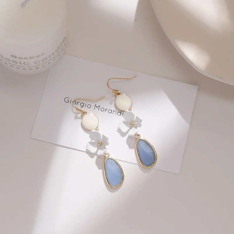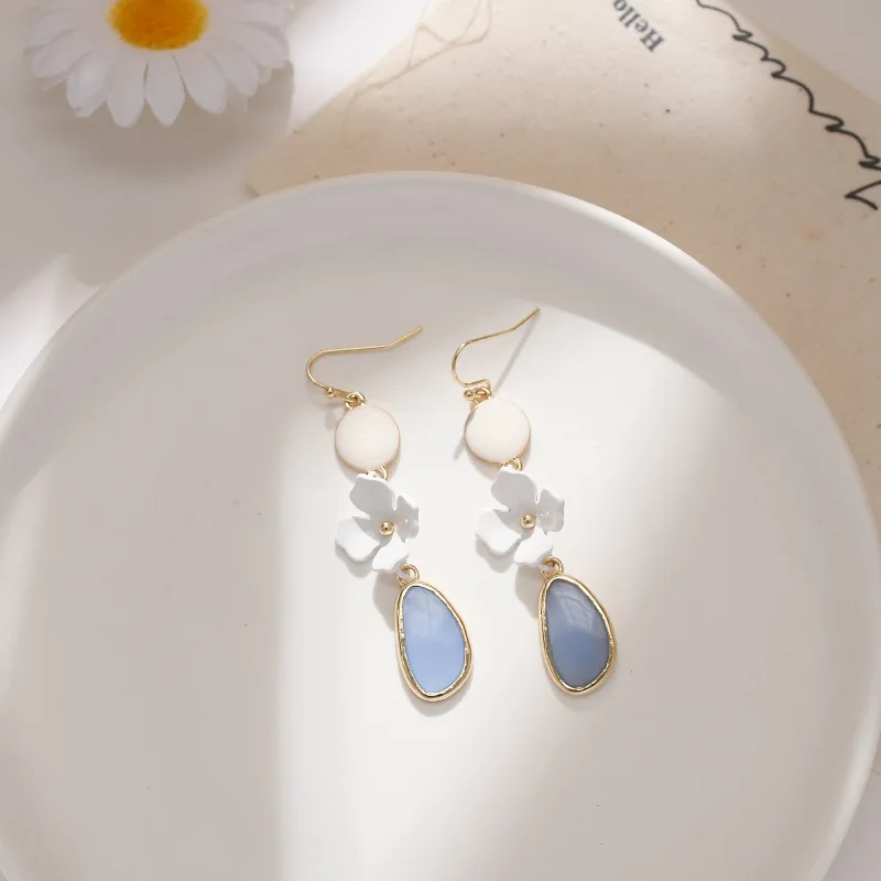 Отзывы о Корейский милый белый цветок Геометрия Длинная кисточка ушной крючок серьги