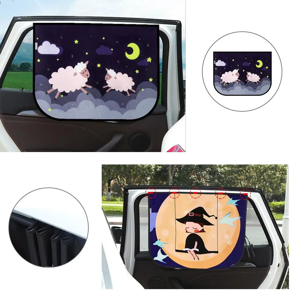 Bullet Points:1、Universal Car Side Sunshade Cartoon Curtain Window Sun Curtain For Kids Curtains Cars Rear Side Car Accessories