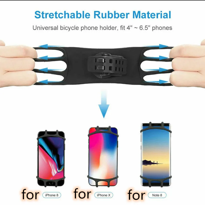 Универсальный Дизайн: с регулируемым ремешком, он подходит для любого стиля или размера велосипеда, мотоцикла, руля скутера, колясок и тележек для покупок. Освободите руки в любое время и в любом месте. Нескользящий силикон поглощает все удары, надежно захватывает ваши устройства, обеспечивает безопасность и безопасность ваших устройств на велосипеде или детской коляске.