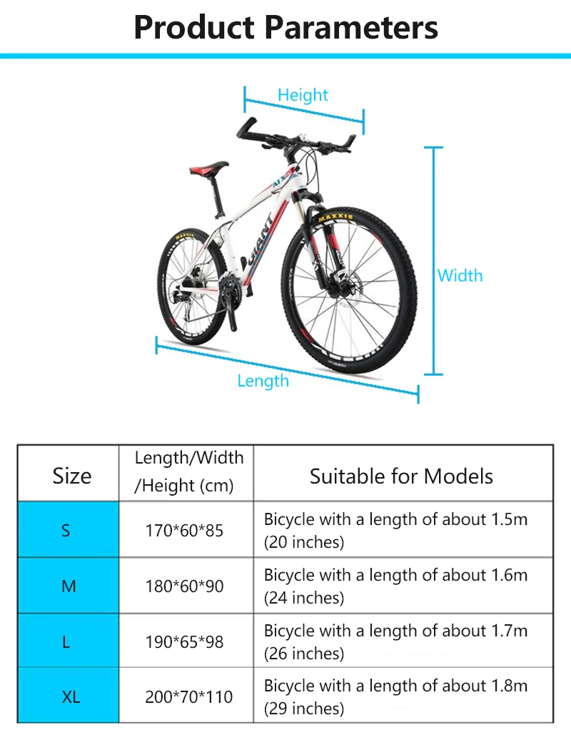 DURABLE PROTECTION: High density and durability 190T nylon material and PU coating, repel water and 40+ UV resistant, protected your bicycle against rain, snow, dust, wind, sun damage and scratches. Keep your bike like new for a long time.