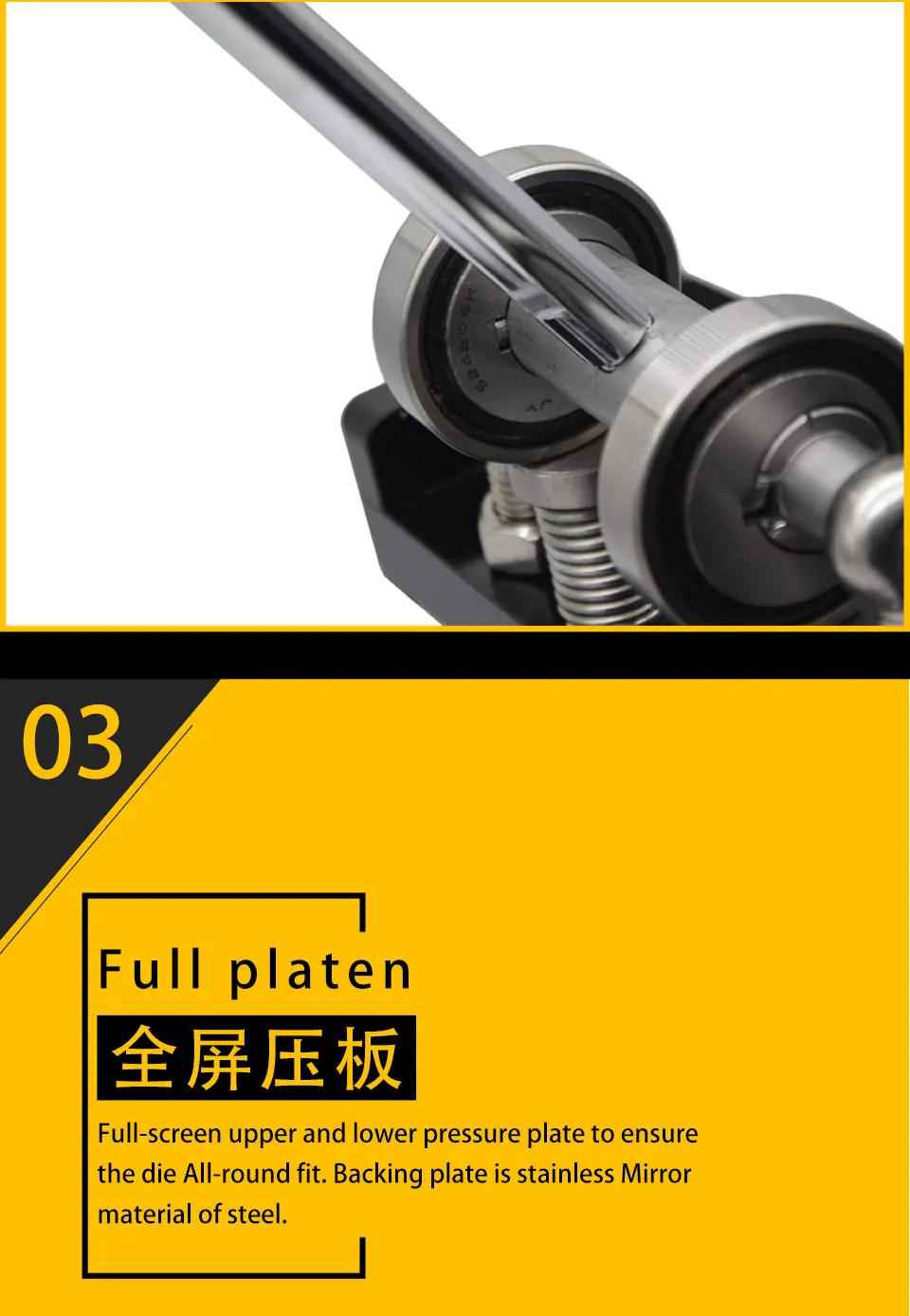 2. Эта машина изготовлена из углеродистой стали, прочной и высококачественной. Высоту прессовочной пластины можно изменить, регулируя винты с двух сторон, и машина может вращаться на 360 градусов. Ручная работа делает вас работать в тихой среде. Трудосберегающий Тип облегчает работу.