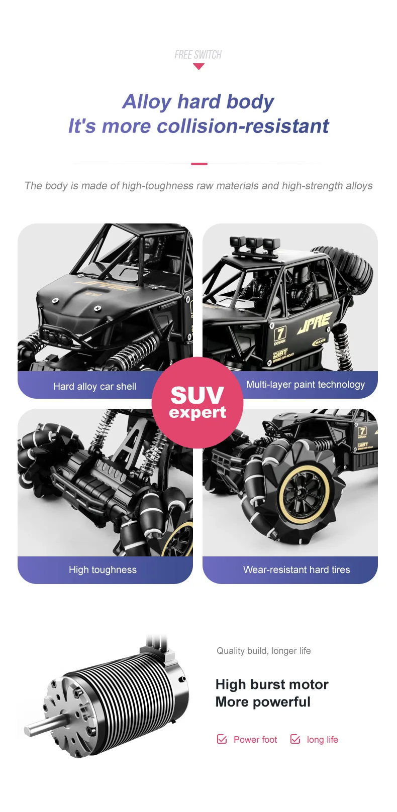 Крутые огни, танцевальная музыка, вращение на 360 °, дрейф, дрожание, звуковые эффекты рога, программирование вперед, назад, поворот влево, поворот вправо, влево в сторону, вправо в сторону.