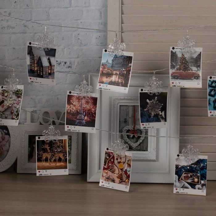 Отзывы о Гирлянда "Нить" 4.5 м с насадками "Прищепки-снежинки" IP20 прозрачная нить 20