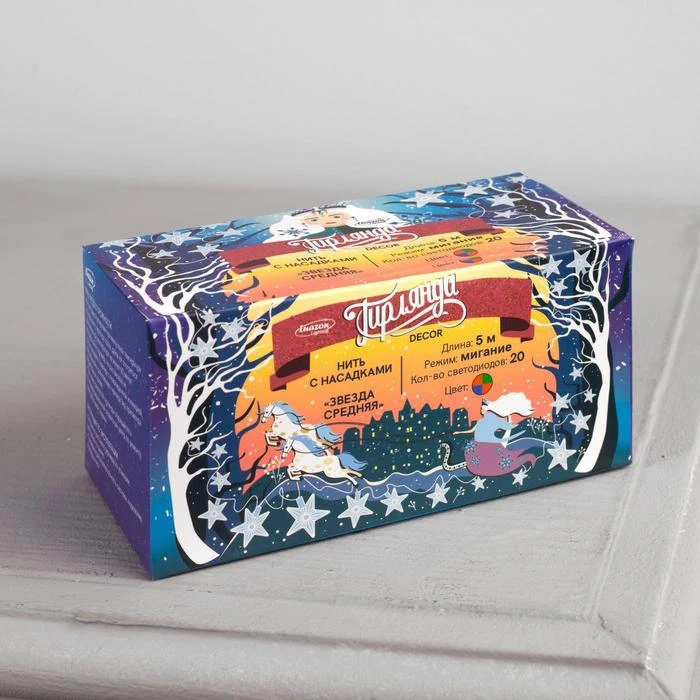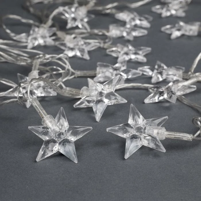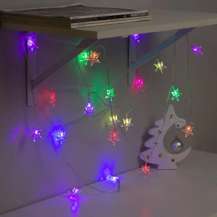 Гирлянда "Нить" 5 м с насадками "Звезда средняя", IP20, прозрачная нить, 20 LED, свечение мульти, мигание, 220 В