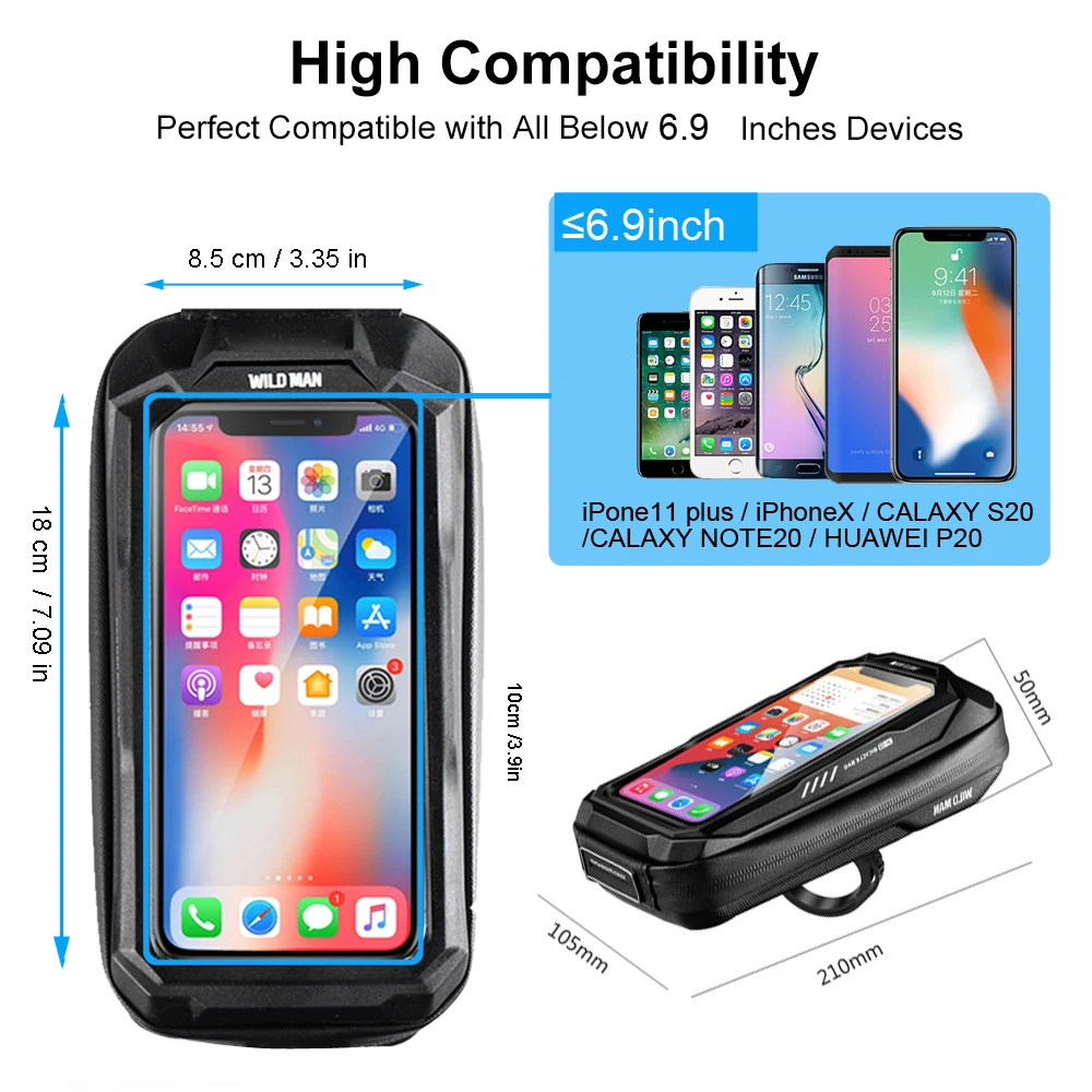 2-в-1 сумка для велосипеда: велосипедная сумка для телефона в сочетании как сумка для хранения вещей и чехол для телефона, поставляется с прозрачная задняя крышка из ТПУ сенсорный экран, который обеспечивает более 90% чувствительность, обеспечивает максимальное удобство в использовании во время Велосипеды.