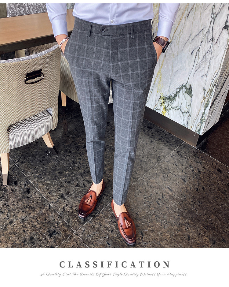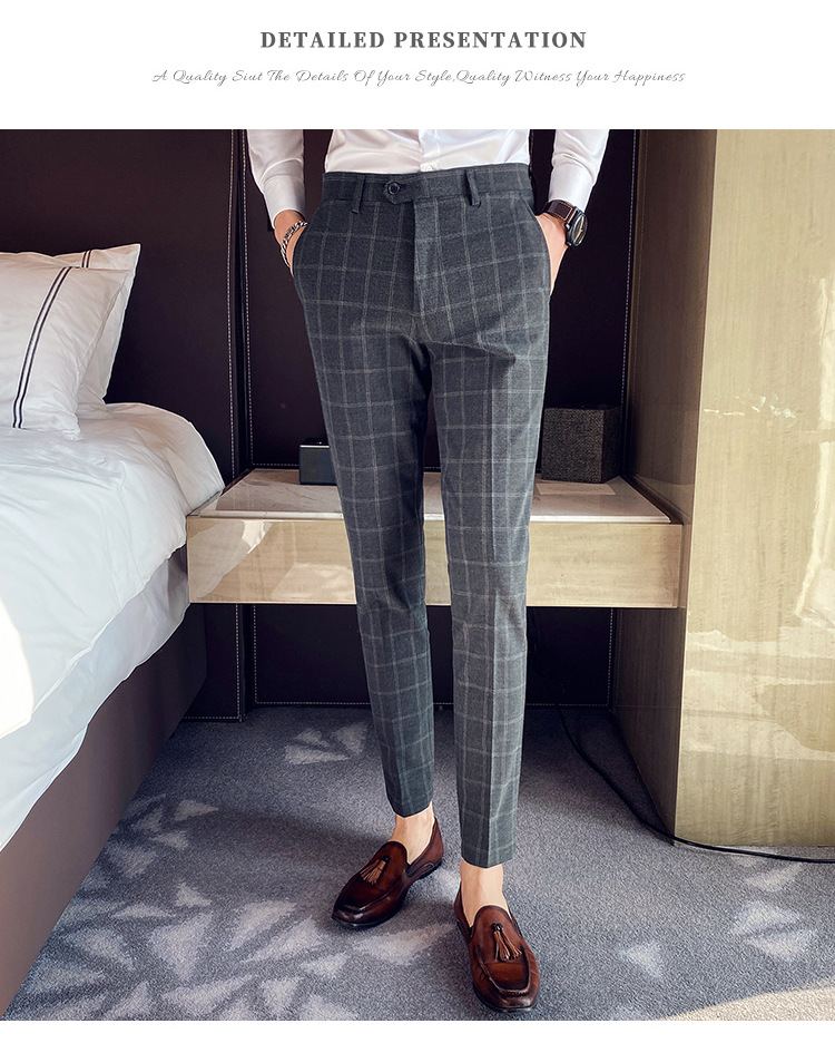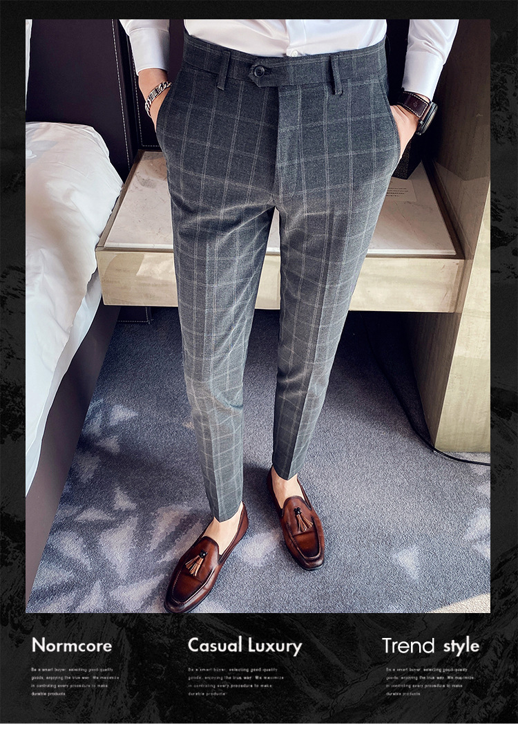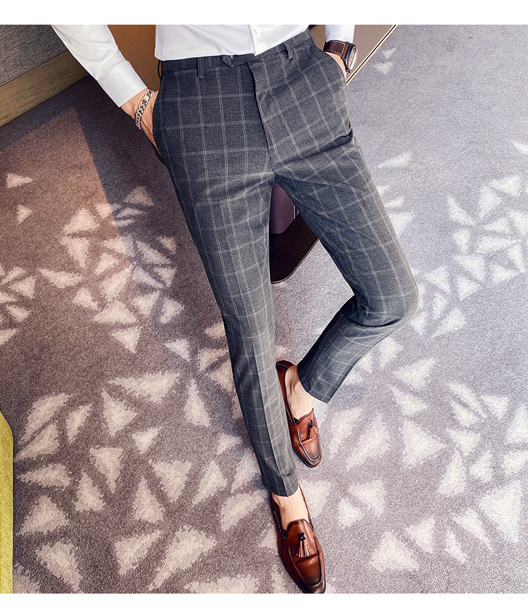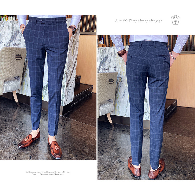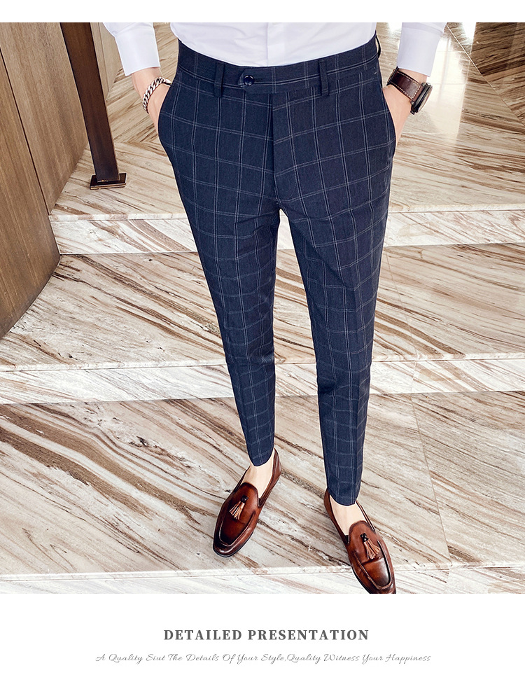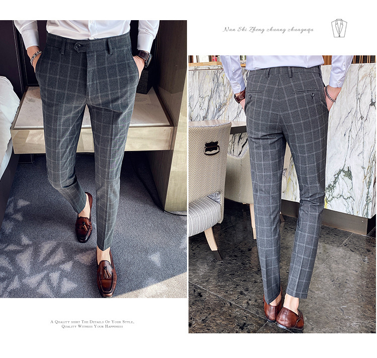 Отзывы о High-quality men’s casual pants Fashion plaid Korean style trousers with small feet Men’s formal Exact Suit | Мужская одежда