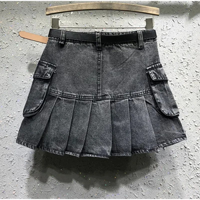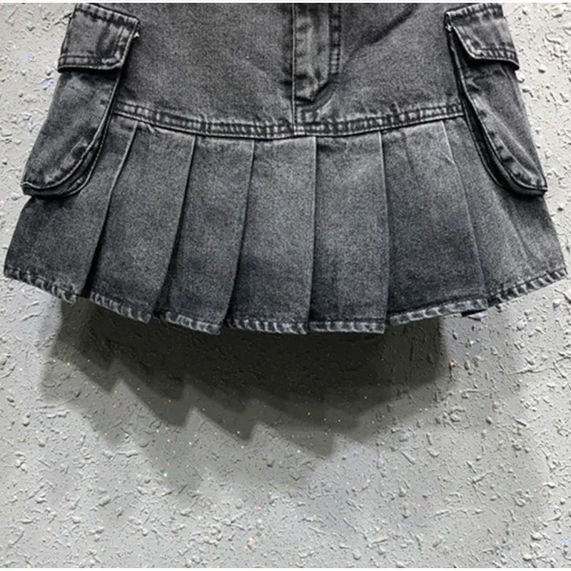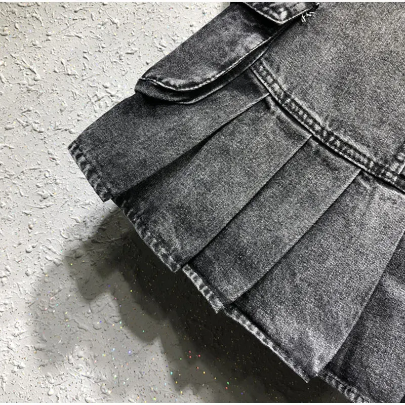 Отзывы о Женская короткая джинсовая юбка с большими карманами базовая плиссированная