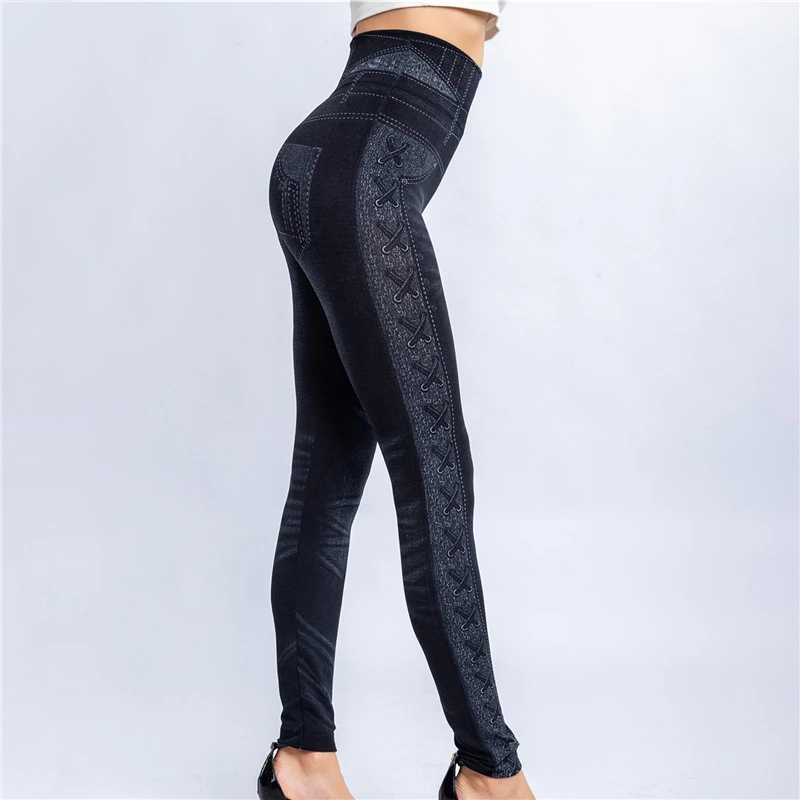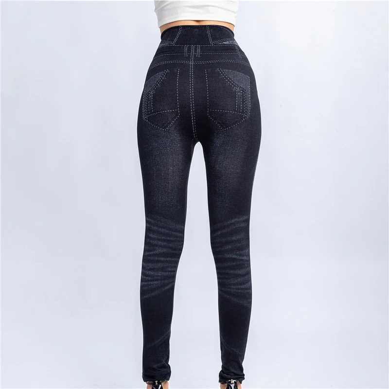 Женские Имитация проблемных лосины из джинсовой ткани, повседневные обтягивающие эластичные брюки-карандаш с высокой талией, модные леггинсы для фитнеса
