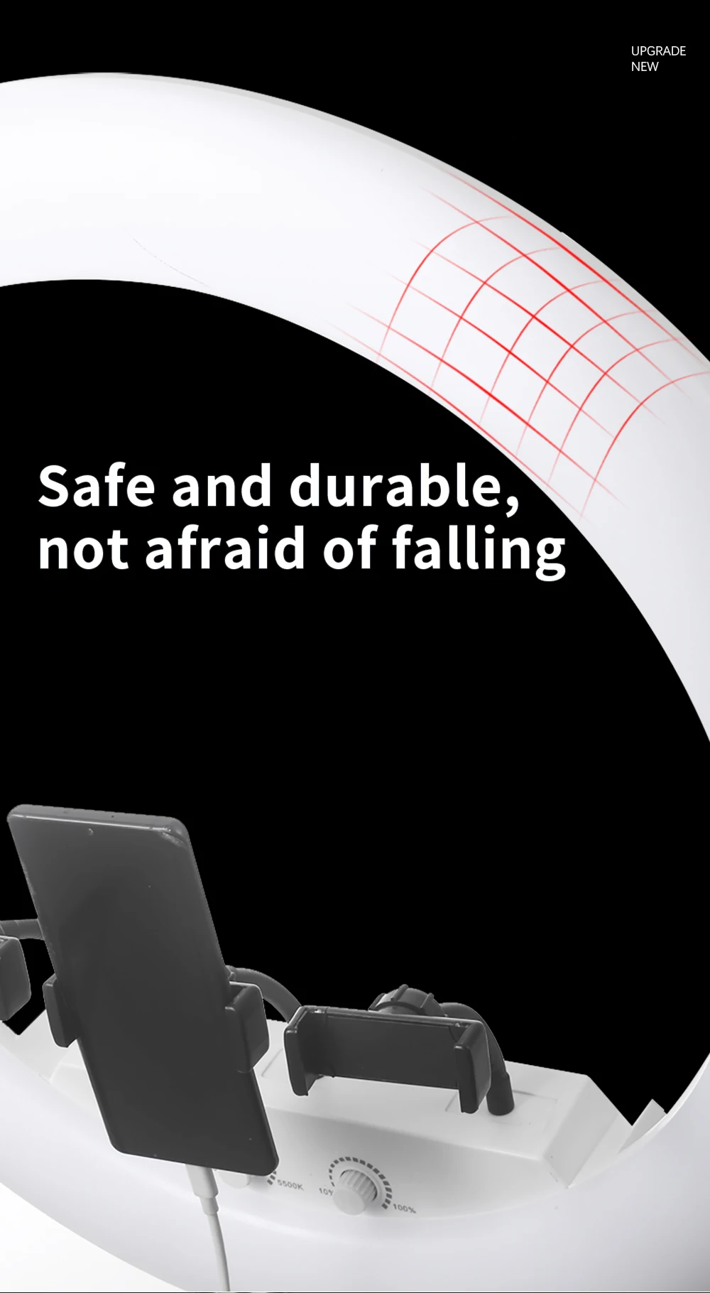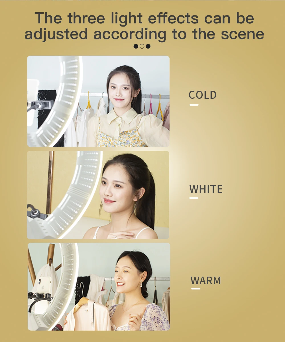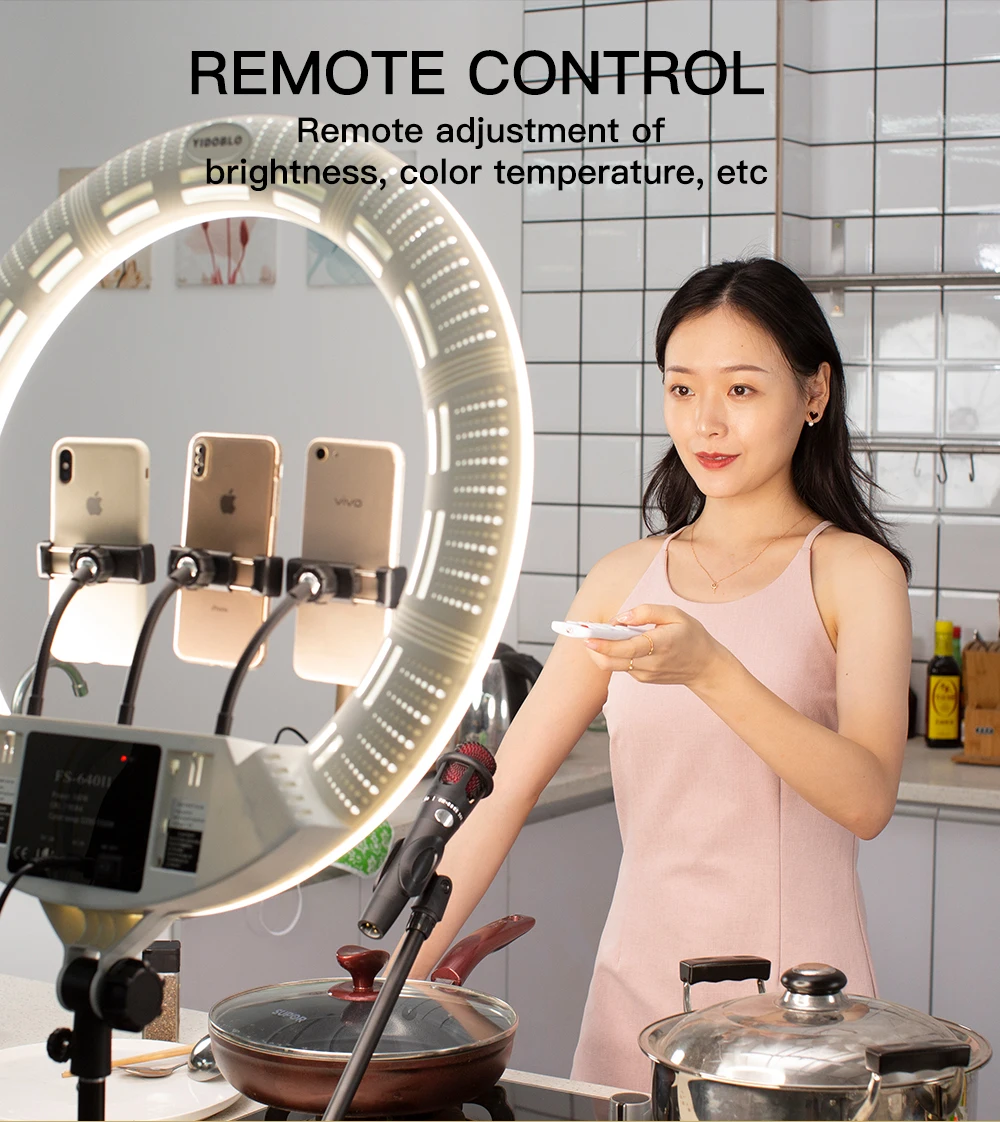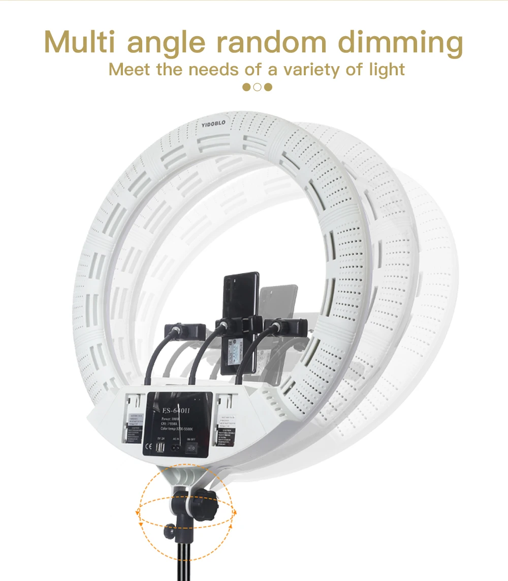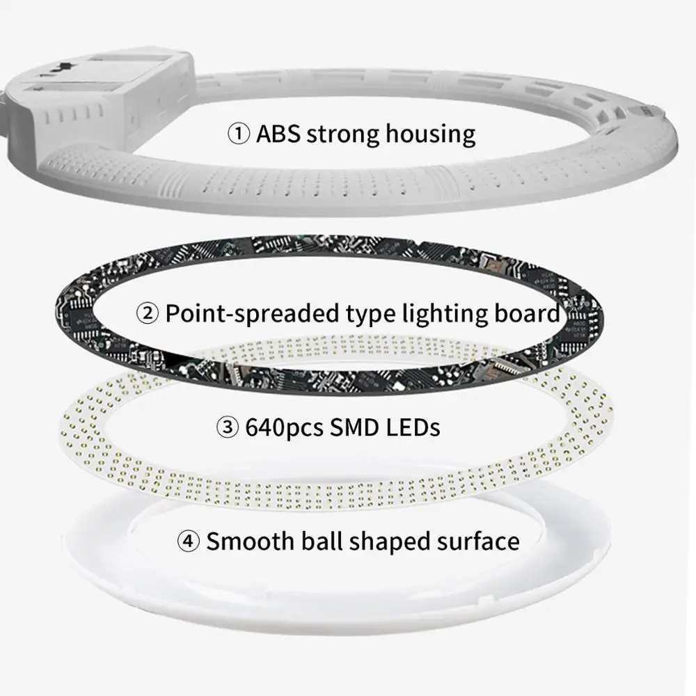 1) Светодиодная кольцевая лампа, более высокий CRI: более 95RA, с регулируемой яркостью 10%-100%, без мерцания